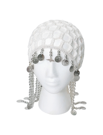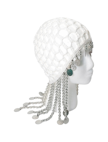 Pañuelo boho con cuentas y conchas plata