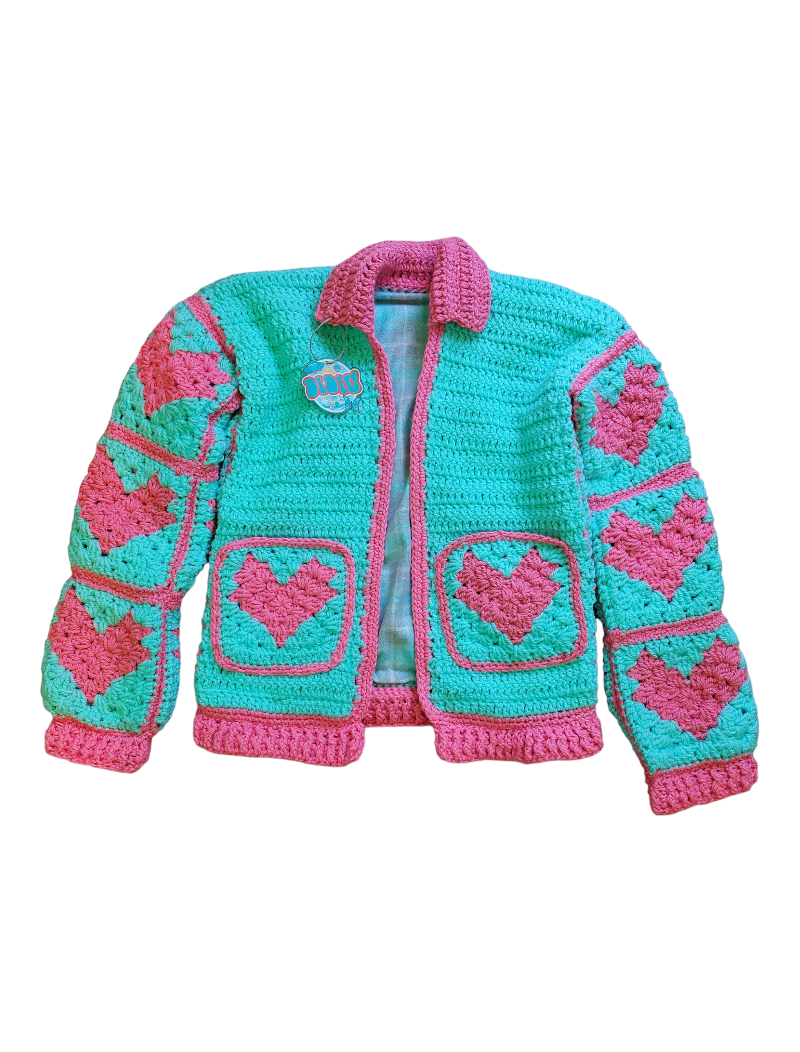Descubre la calidez y el estilo de nuestro exclusivo abrigo corazones de crochet, hecho a mano con la técnica de granny square. Este abrigo no solo es una prenda, ¡es una obra de arte! Con un encantador diseño de corazones y una paleta de colores vibrantes, cada pieza es única y refleja un amor por la moda y la artesanía.